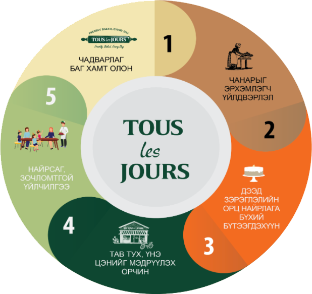 Ажилд орохдоо zangia.mn эсвэл "Tous les Jours"-ийн хүний нөөцийн Facebook хуудас дээрээс Google Form-оор бүртгүүлж болдог. Бүртгүүлсэний дараа хүний нөөцөөс тэдэн руу залган ажилд авах талаар ярилцдаг ба ихэвчлэн ажилчдыг сургаж авдаг тул өмнөх туршлага шаарддаггүй.